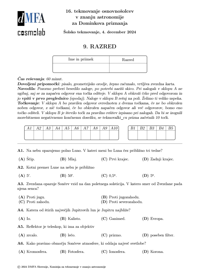 Skoraj 13.000 tekmovalk in tekmovalcev iz astronomije in razvedrilne matematike